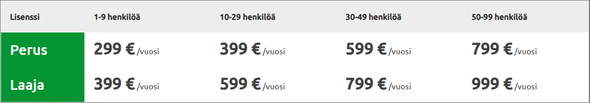 - ei vaadi erikseen ostettua koulutusta vaan voitte kouluttaa henkilöstön sisäisesti omien vastuuhenkilöiden / esimiesten avulla.
